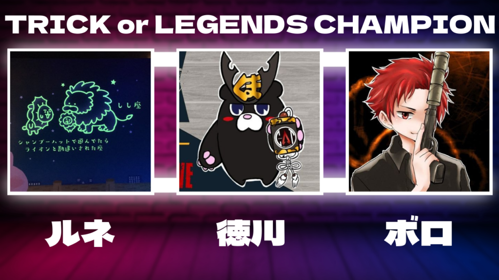 見事トリックオアレジェンズ杯で優勝されました『CAT』の「徳川さん・ボロさん・ルネさん」の3人にお話を伺っていこうと思います!よろしくお願いいたします!