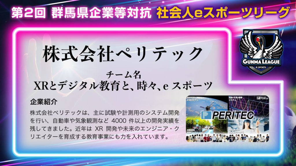 ペリテック(以下、ペリ):eスポーツを通して、高崎市にある「ペリテック」がどんな会社で何をしている会社なのかを多くの方に知ってほしいと思っています。